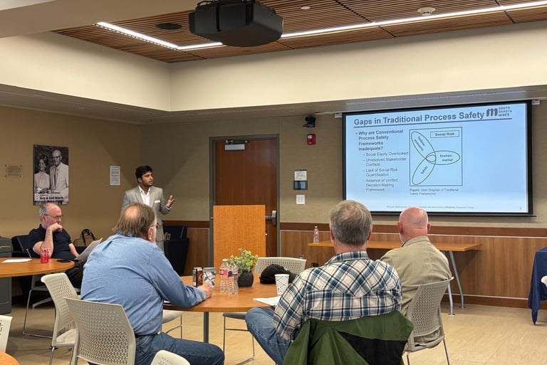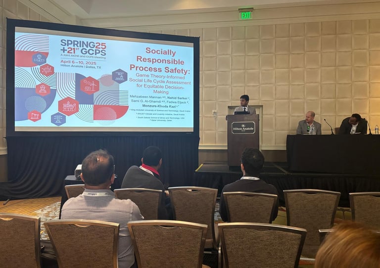 Nahid's presentation, titled "A Socio-Technical Framework for Process Safety Optimization: Integrating Inherently Safer Design Tool, Social Life Cycle Assessment and Game Theory," showcased his innovative work on socially responsible process safety to resolve stakeholder conflicts and provide a holistic process safety framework.