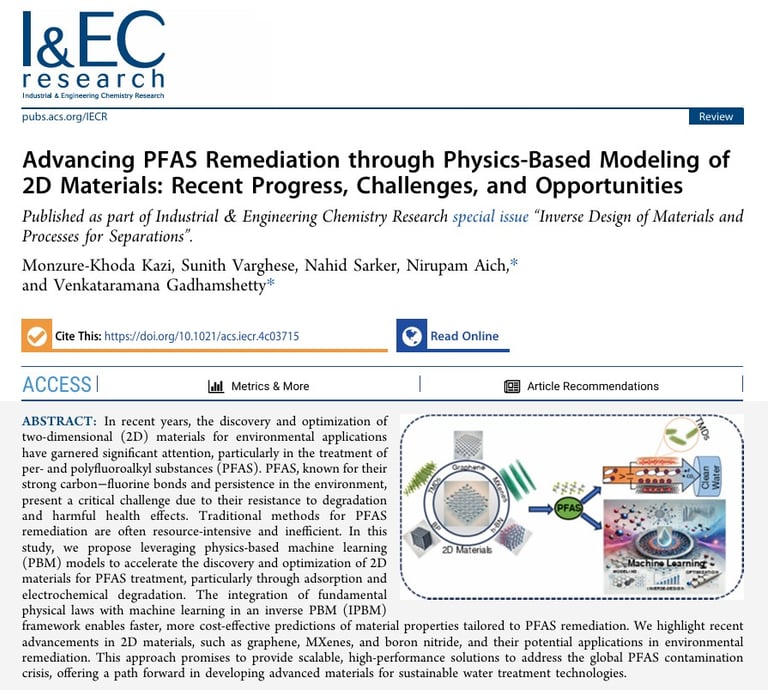 Title: Advancing PFAS Remediation through Physics-Based Modeling of 2D Materials: Recent Progress, Challenges and Opportunities.